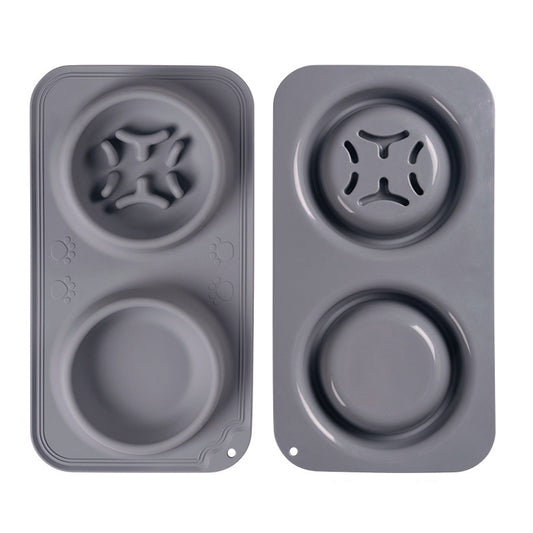 Silicone Pet Bowl Pet Drinking And Feeding Double Bowl Slow Food Bowl Non-slip And Anti-overflow Foldable Large Capacity Bowl